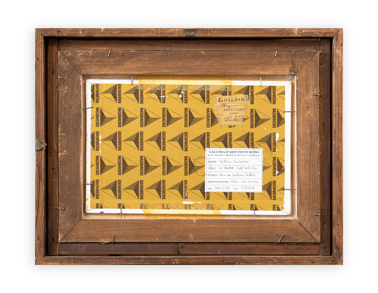 Etichetta e timbri della Galleria d'Arte Ponte Rosso (MI) al retro