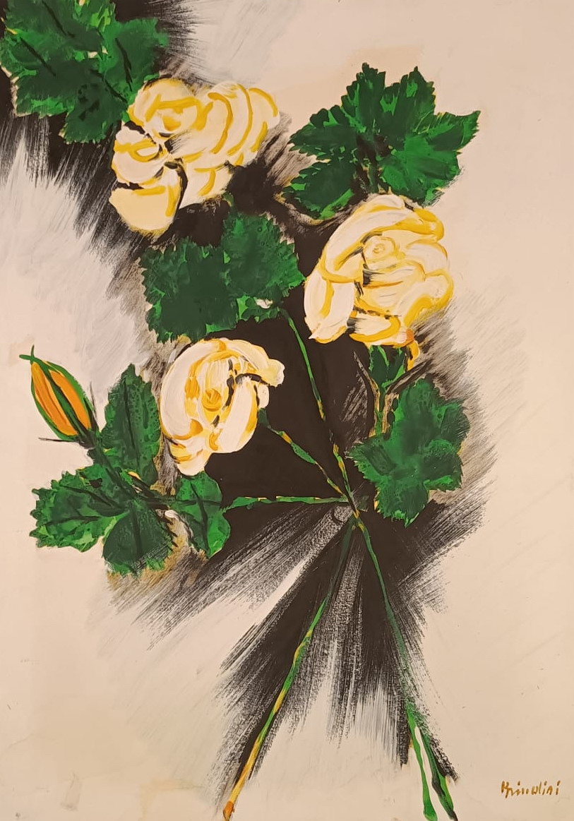 BRINDISI REMO Roma (Roma) 1918 Rose gialle 1980 Tempera su carta intelata...