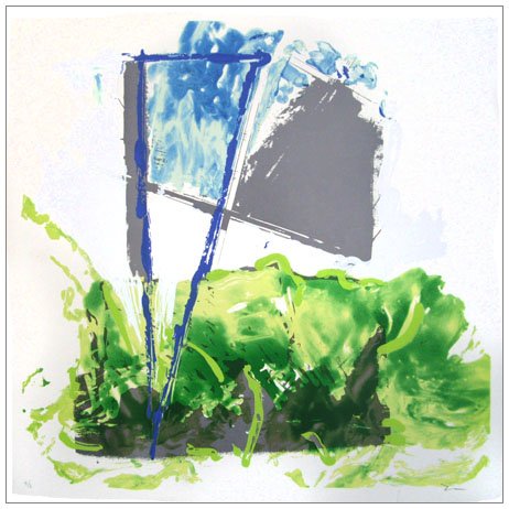 MARIO SCHIFANO Homs 1934 - Roma 1998 Senza titolo (Mono + tono) Litografia e serigrafia a colori es.E/Z. Firma in b. a d. (70 x 70 foglio – 66 x 66 lito.) Certificato di autenticità e provenienza Telemarket, Roncadelle.
