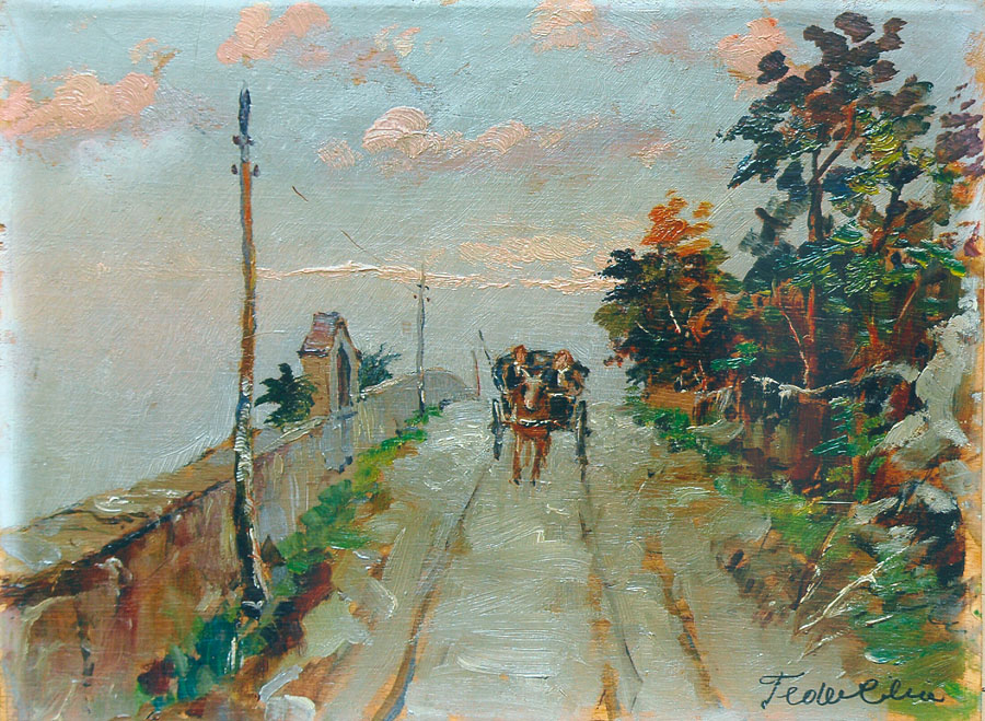 Lot 6 | FEDERICO CILEA Paesaggio con calesse Olio su tavola cm. 27x37 firmato