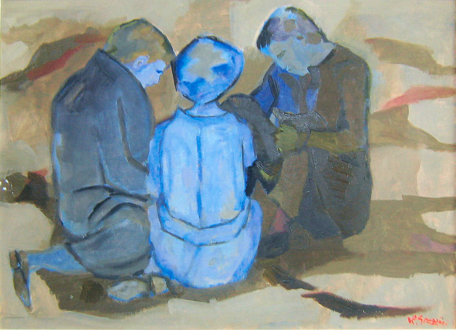 RENZO GRAZZINI Figure sedute Olio su tavola cm. 50x70 firmato Foto Galleria Tornabuoni, Firenze