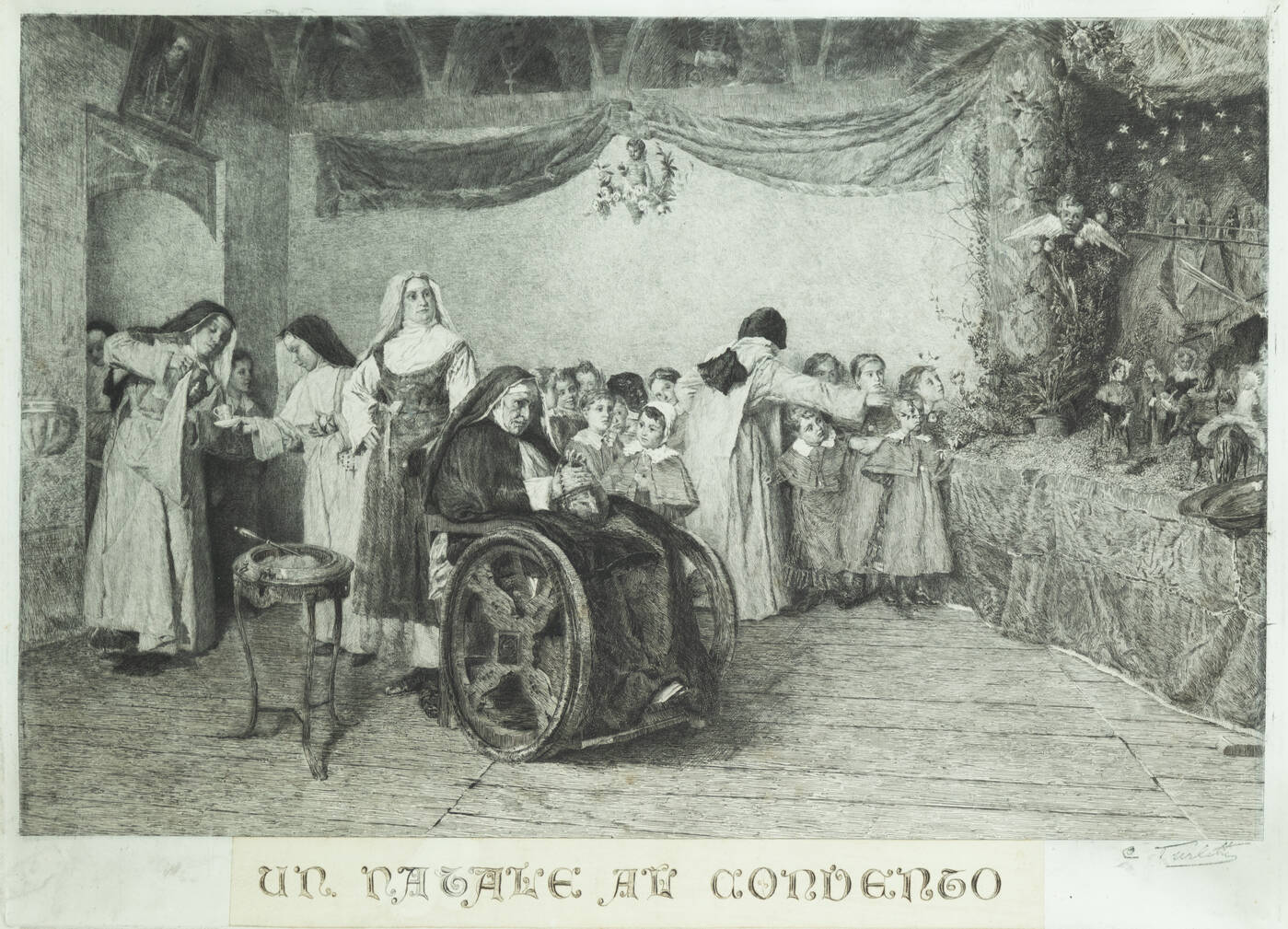 CELESTINO TURLETTI<BR>Torino 1845 - 1904<BR>"Un Natale al convento"