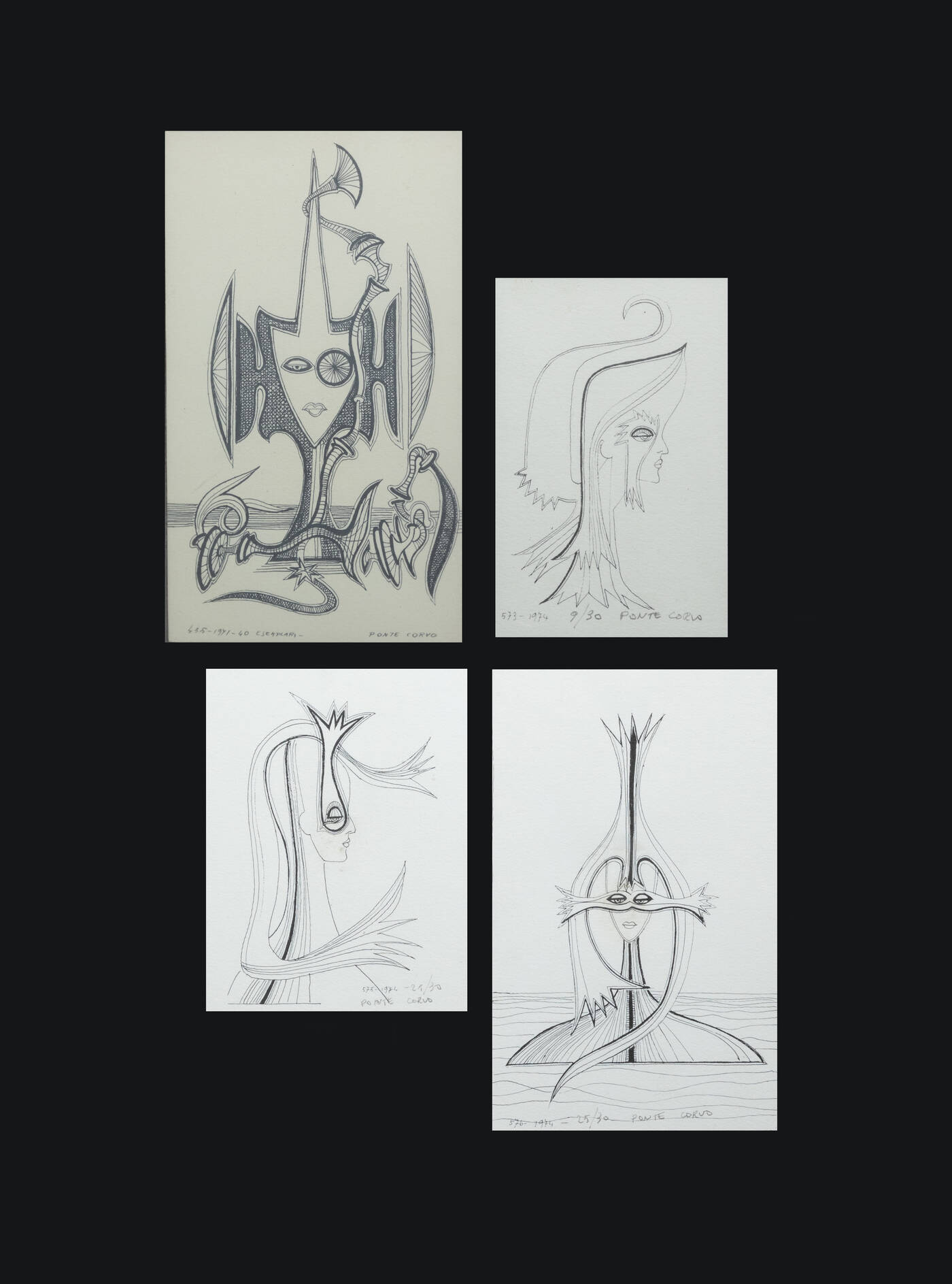 PONTE CORVO (Raffaele Pontecorvo)<BR>Roma 1910 - 1983 Torino<BR>Lotto di quattro litografie<BR>a - "435" 1971<BR>b - "576" 1974<BR>c - "573" 1974<BR>d - "575" 1974