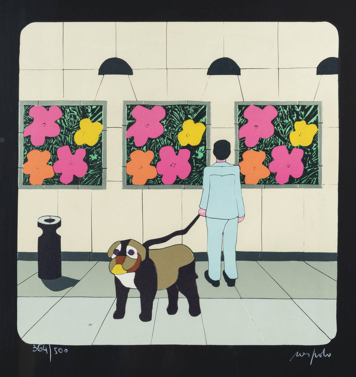 UGO NESPOLO<BR>Mosso Santa Maria (VC) 1941<BR>"Visita alla mostra di Warhol"