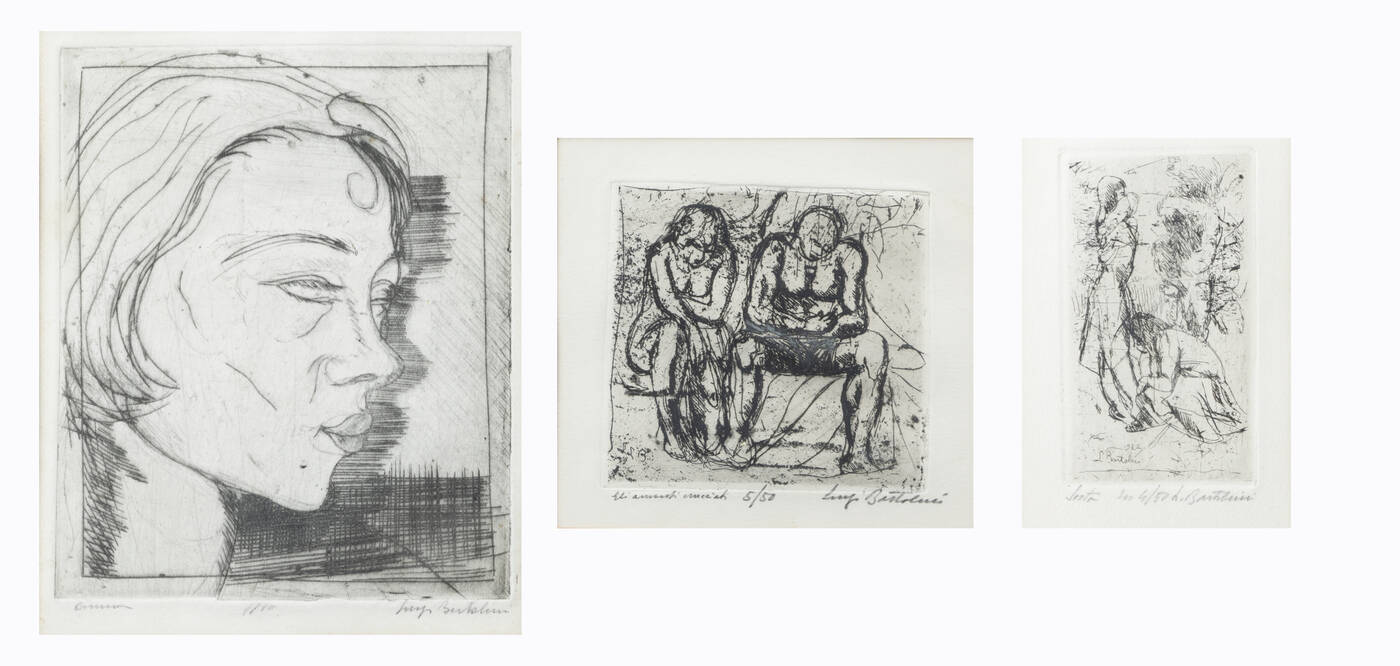 LUIGI BARTOLINI Cupramontana (AN) 1892-1963 Roma Lotto di tre incisioni A - "Sosta" 1922 B - "Gli amanti crucciati" C - "Gemma"