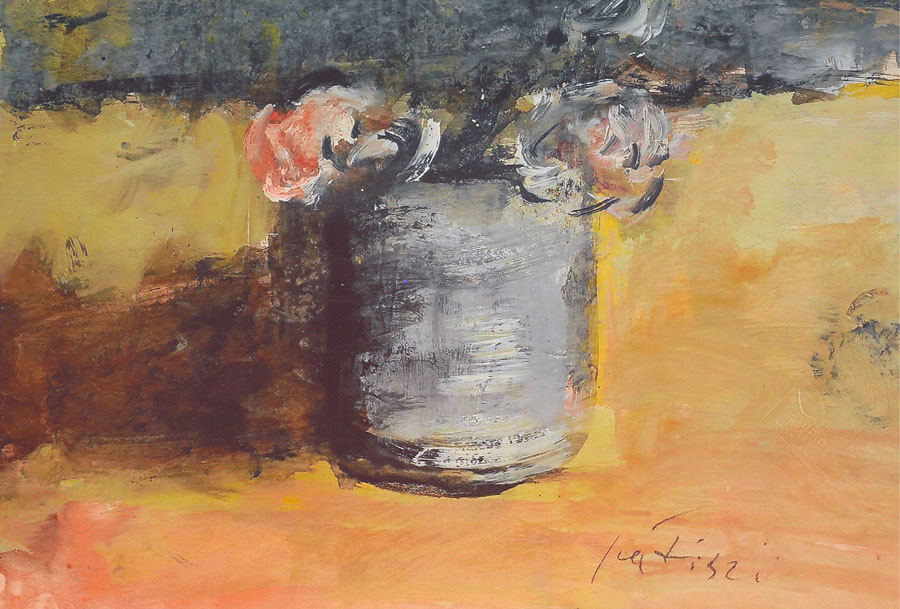 SERGIO SCATIZZI Vaso con fiori, anni ‘70 Tempera su carta riportata su cartone cm. 33x48 firmata Autentica del maestro su fotografia Certificato dell’archivio del maestro