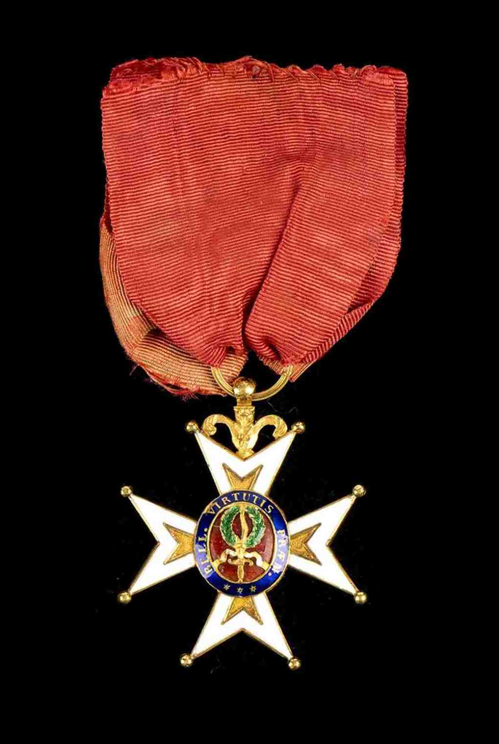 croce in oro modificata con l'asportazione con gigli di Borbone, ottimo stato, nastro originale