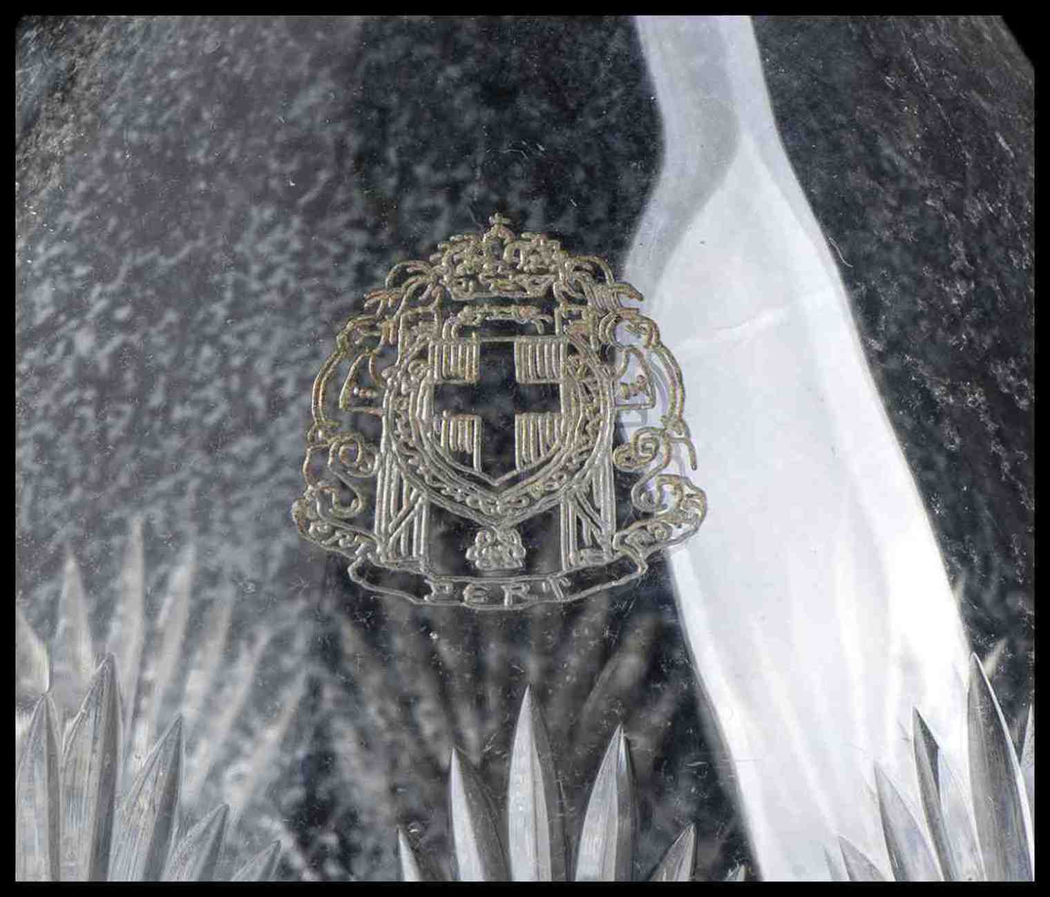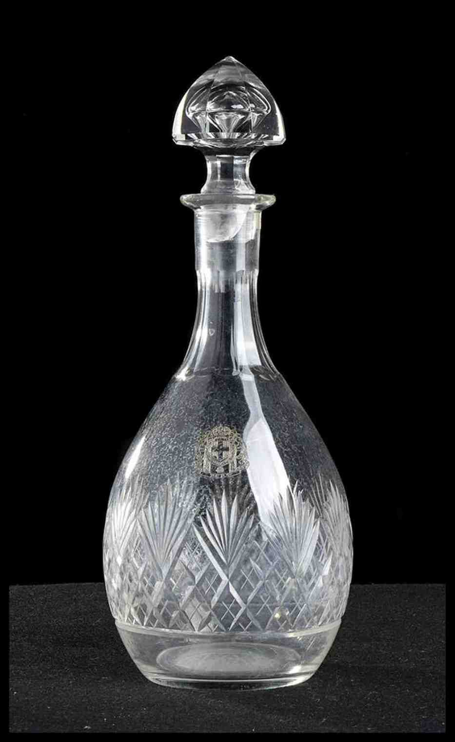 Bottiglia in cristallo con stemma di stato