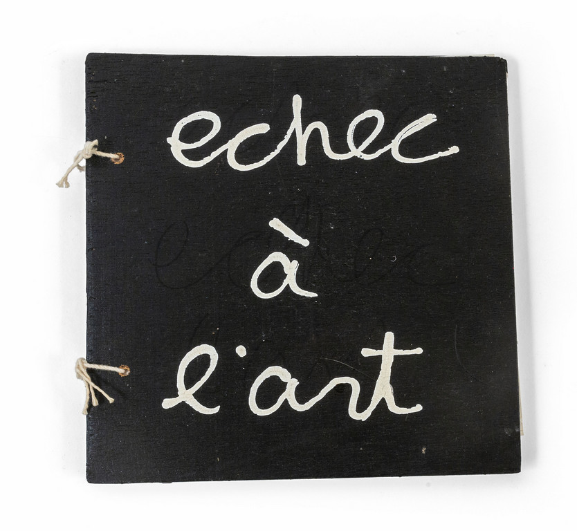 Echec à l'art 1991 acrilico su tavola e libretto nero contenente 46 pagine con intervento dell'artista cm 23x33