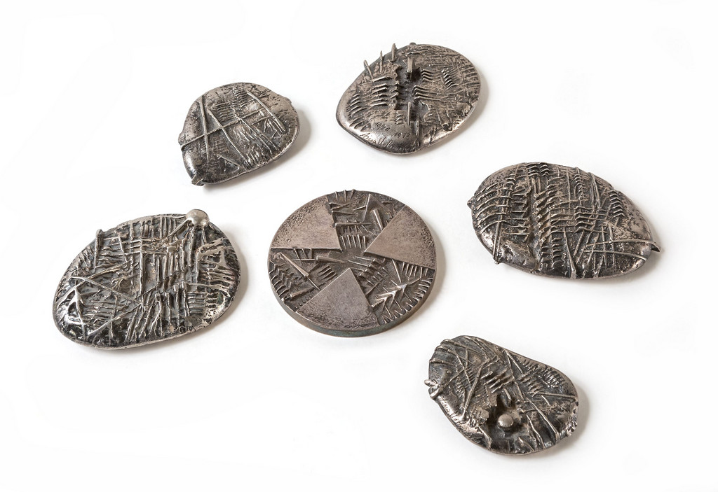 5 silver stones with various measures and 1 silver medal