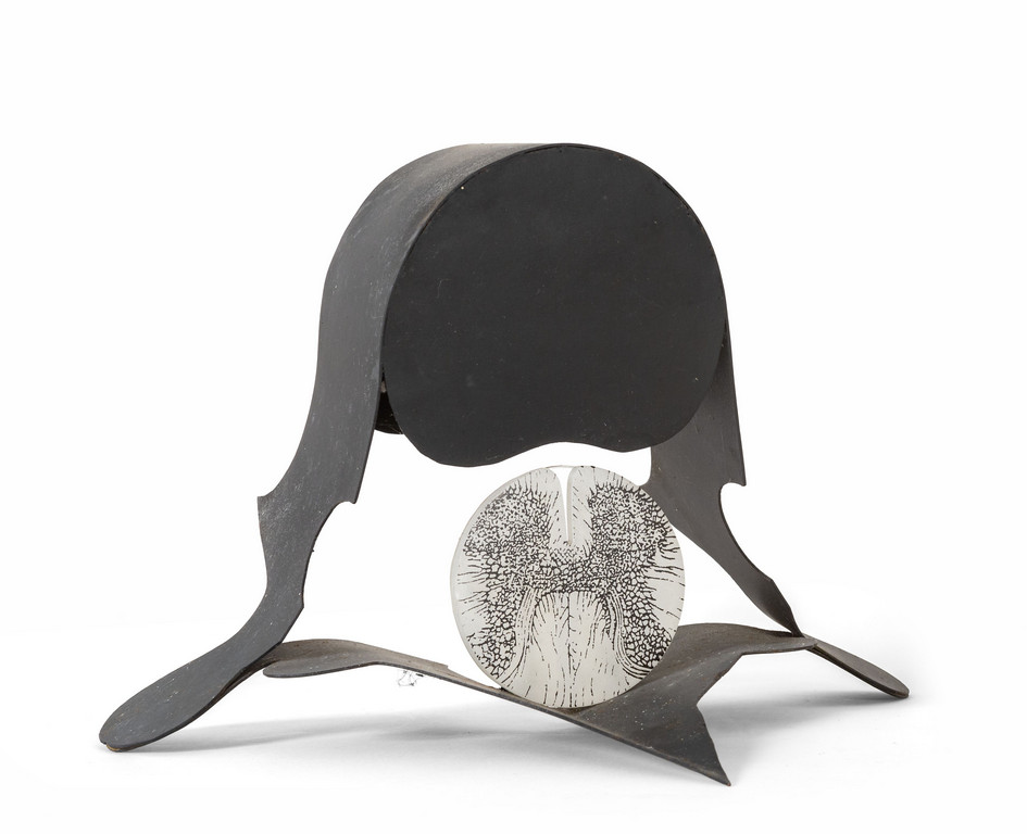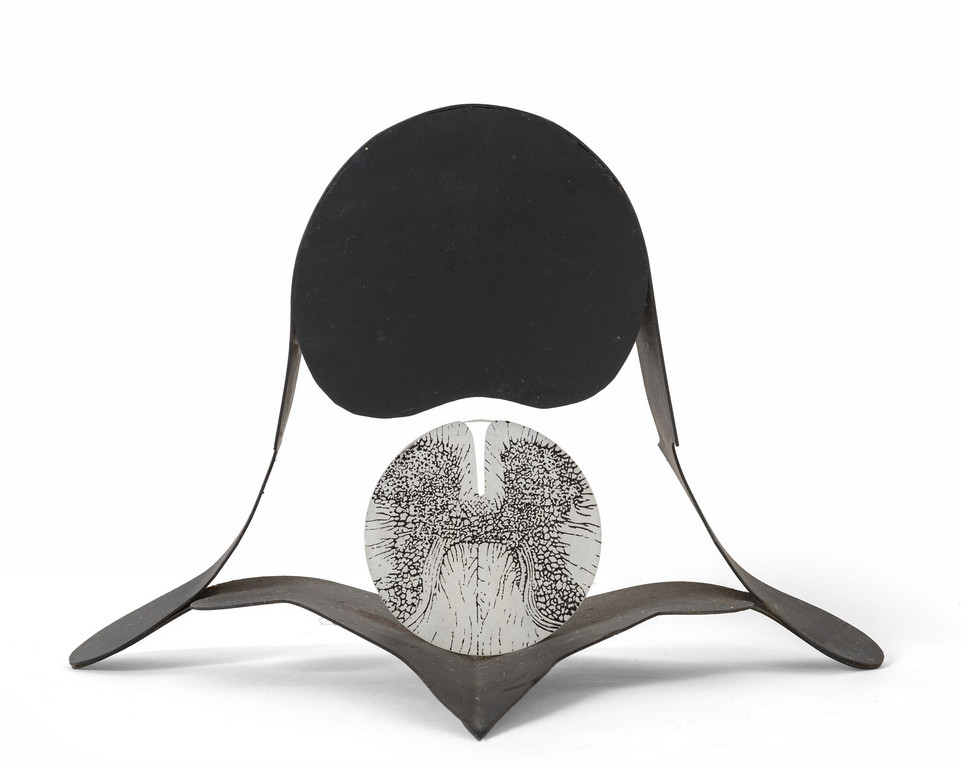 scultura in alluminio e plexiglass serigrafato cm 26x36x43