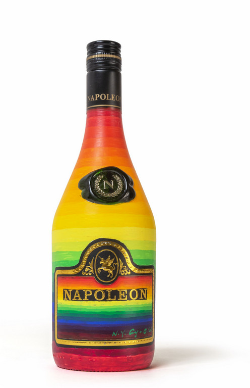 acrylic and mixed media on a bottle of 'Napoleon' cognac h 10 62 in