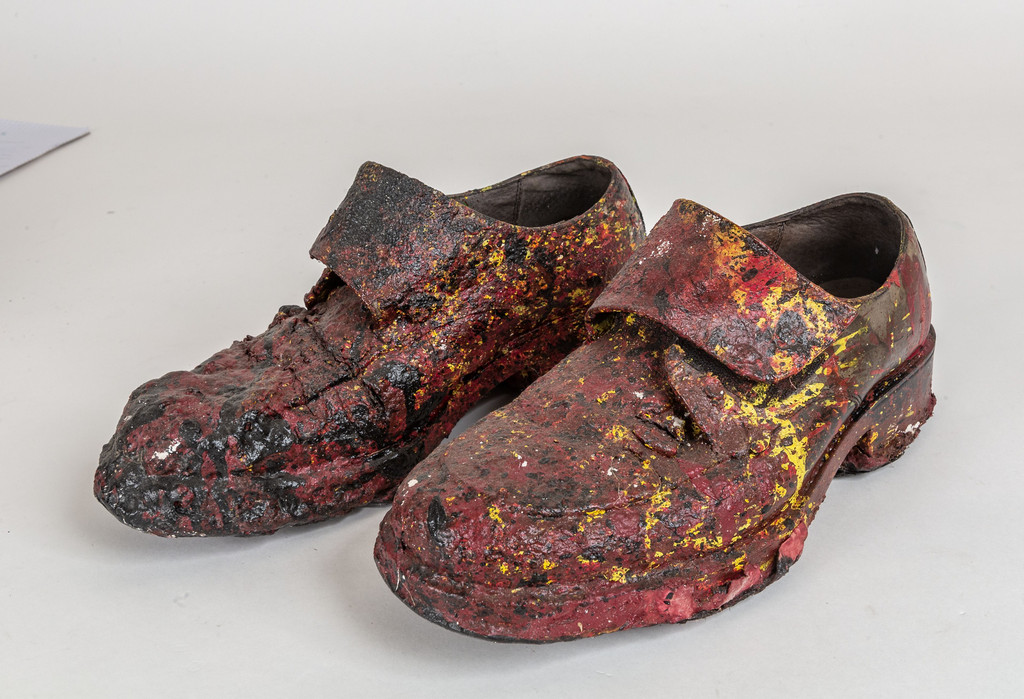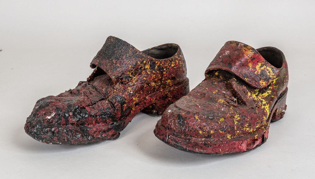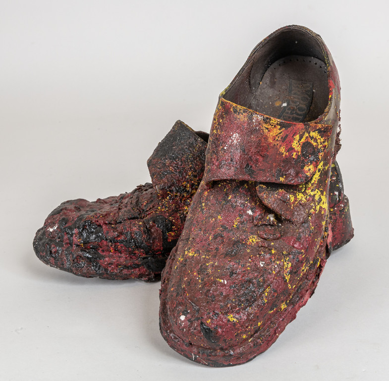 oil and acrylic on shoes 12 59x8 66x5 90 in
