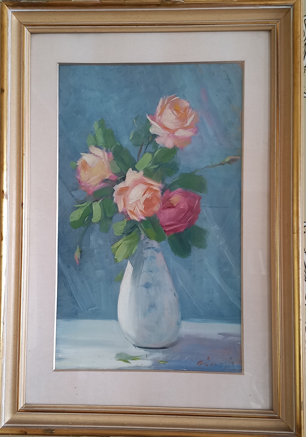 Giacobbi Ernesto (Mortizza 1891-1964) Vaso di fiori olio su tavola cm.52x32...