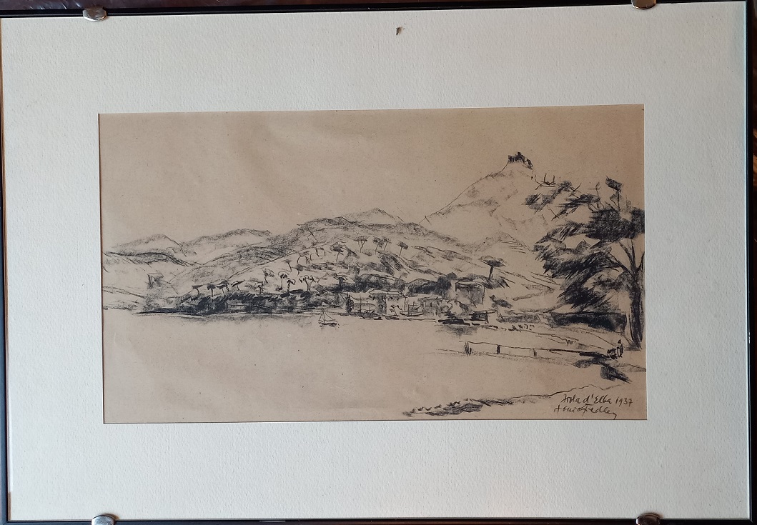 Fiedler Toni (Anton) (1825-1855) Veduta dell'Isola d'Elba 1937 matita su...
