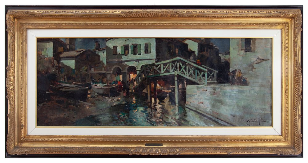 Felice Giordano Napoli 1880 - Capri (NA) 1964 Venezia di sera Olio su tela cm 35x95 rintelato