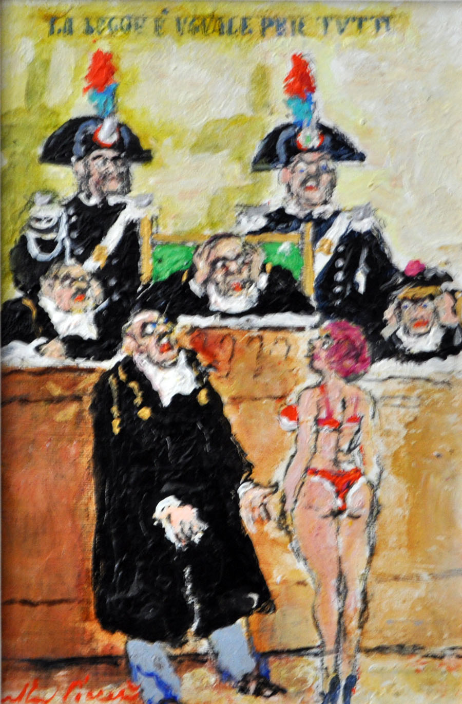 WALTER PIACESI La parola alla difesa, 2011 Olio su tela cm. 30x20 firmato Archivio n. UZLLQ/01568 Foto autenticata dal Maestro