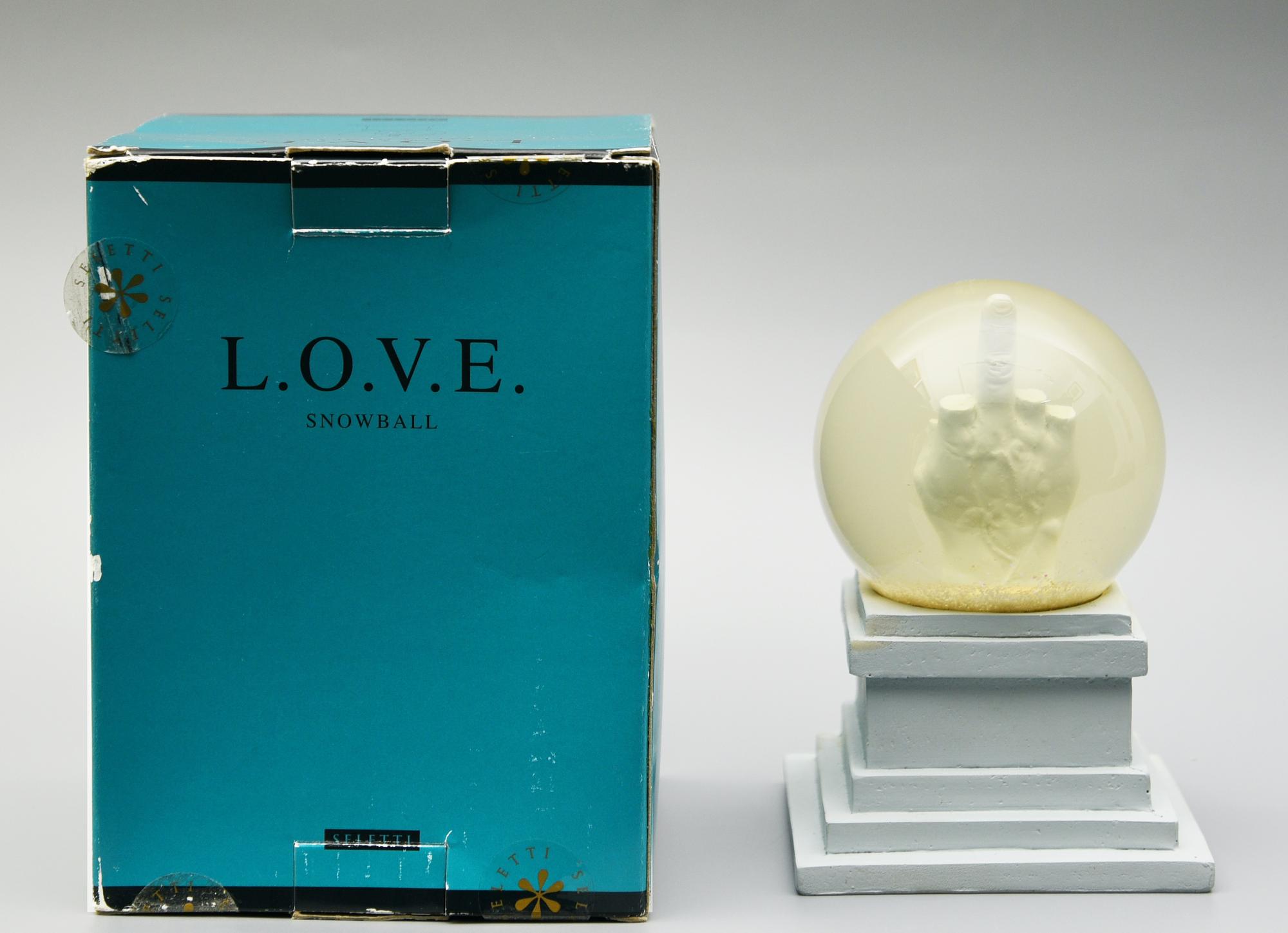 Maurizio Cattelan SNOWBALL L.O.V.E. 2014 multiplo in vetro e resina, cm...