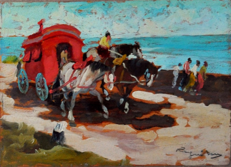 BASSO RAGNI Carro e marina Olio su tavola cm. 20x30 firmato