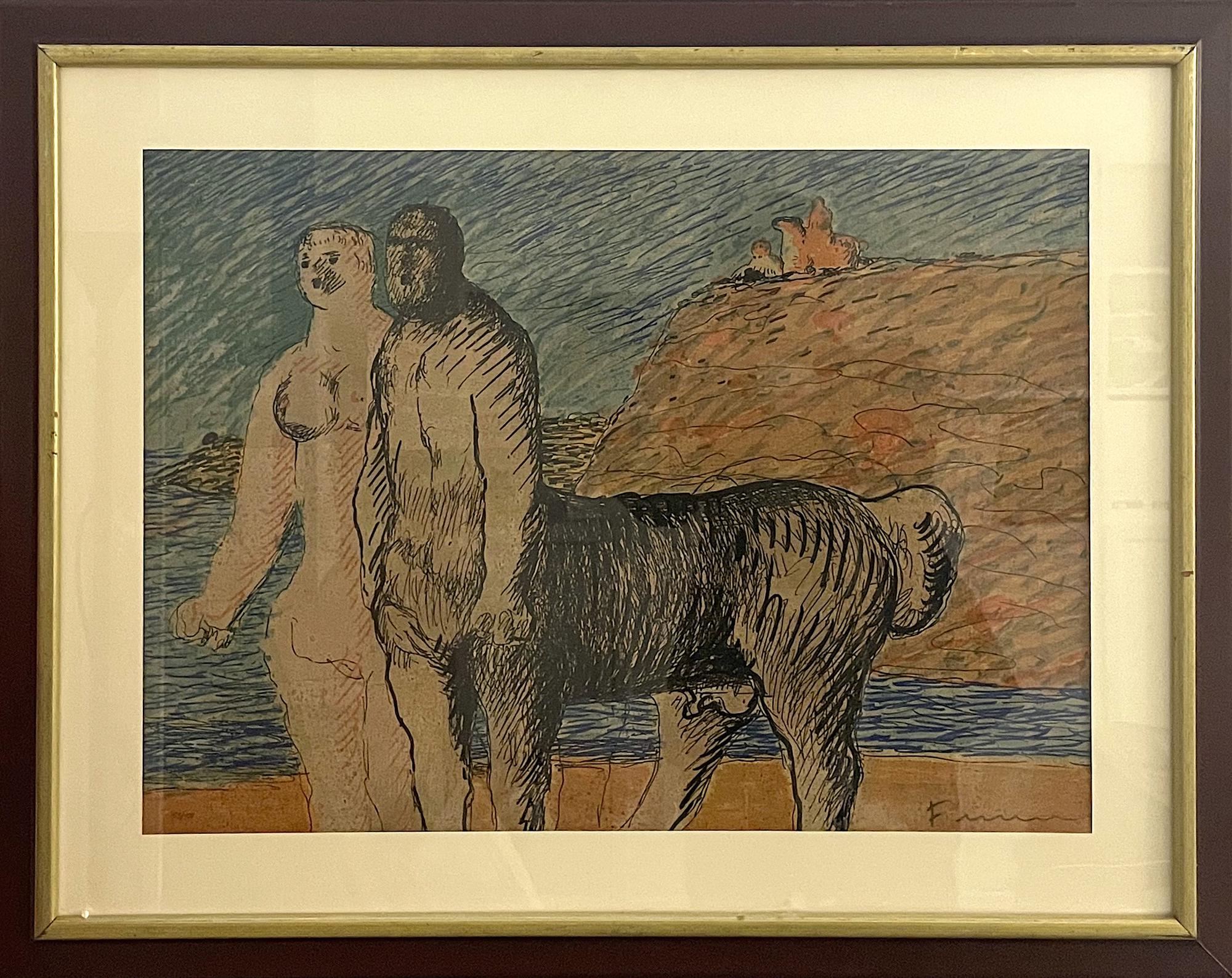 Salvatore Fiume (1915 - 1997) ISOLE DI STATUE CON CENTAURO litoserigrafia, cm...