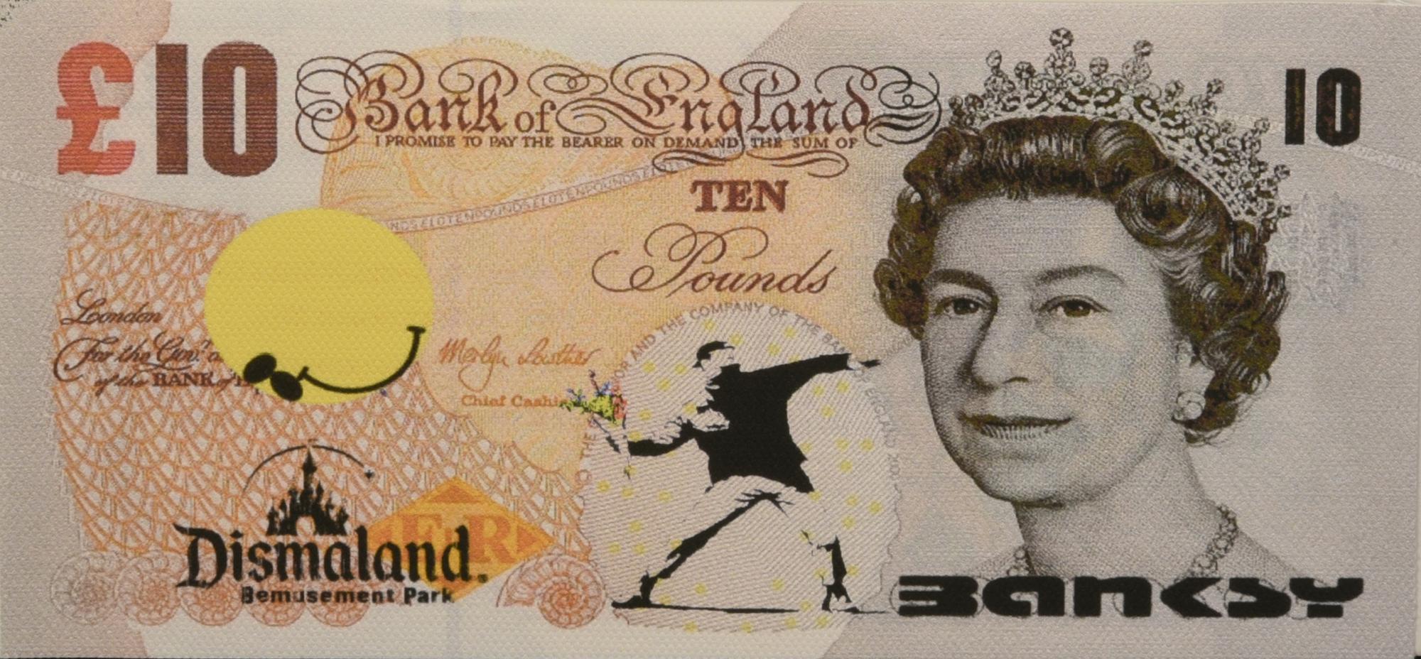 Banksy (1974) DISMAL 10 POUNDS CANVAS, 2015 serigrafia su tela, cm 10,5x21...