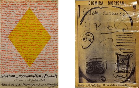ARMAN DIOMIRA MORISANI Lotto unico di 2 manifesti: - Arman – Accumulations Renault, 1969 Musée des Arts Decoratifs, Paris cm. 75x48 Margini danneggiati - Diomira Morisani – Senza titolo, 1970 Studio G30, Paris cm. 51x37 Tutti e due firmati Scorniciati