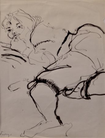 GIOVANNI FRANGI Figura China su carta cm. 41x31,5 firmata Scorniciata