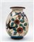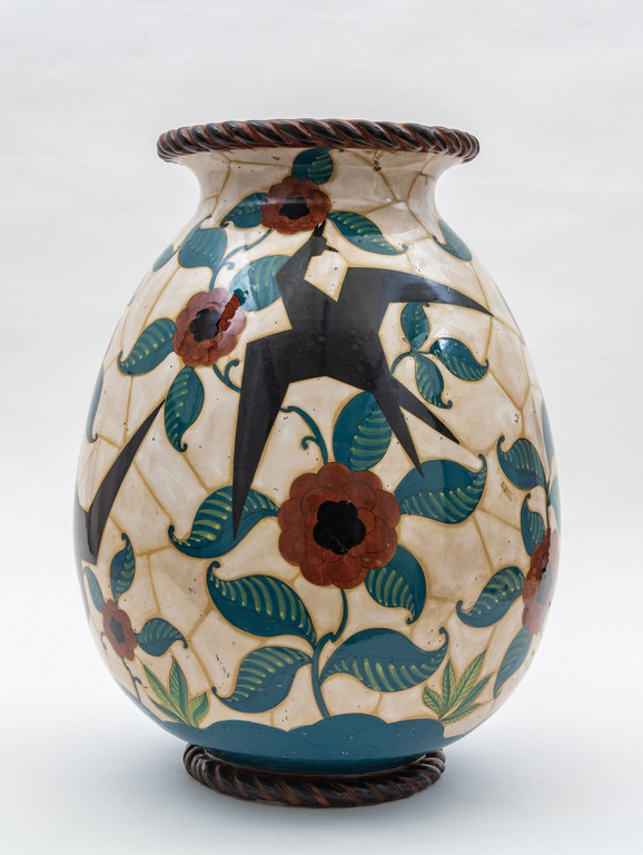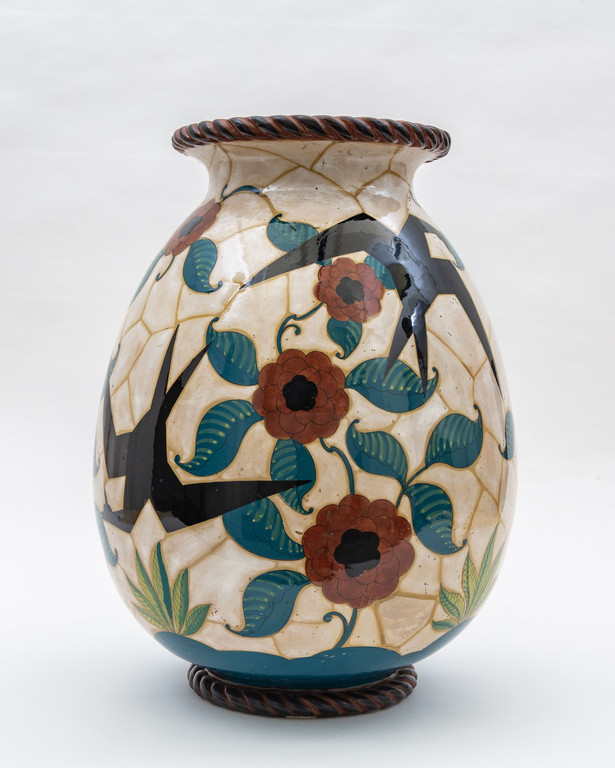 A large maiolica vase with fantastic birds on vegetal ground.