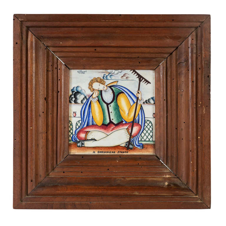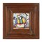 Piastrella in ceramica formata a stampo (modello 77) e decorata a mano (decoro 663 T) cornice di legno.