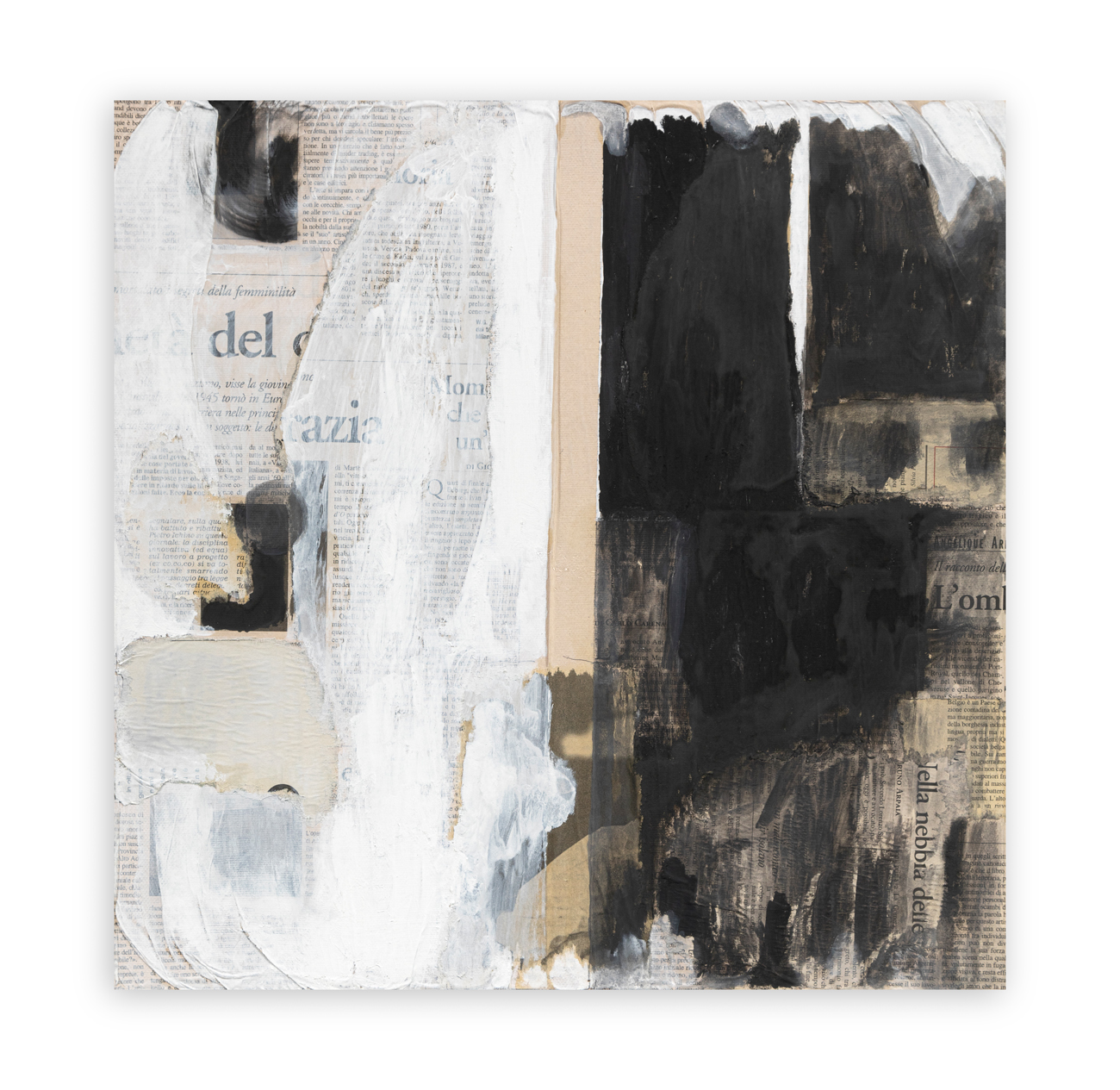 Tecnica mista su carta e ritagli di giornale applicati su tela
