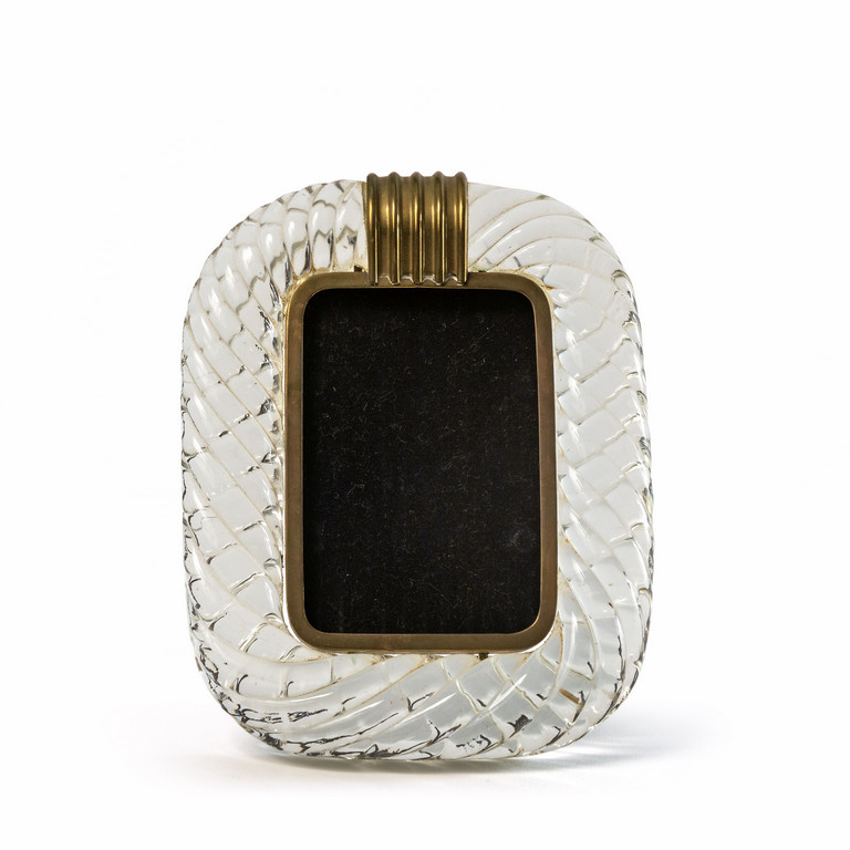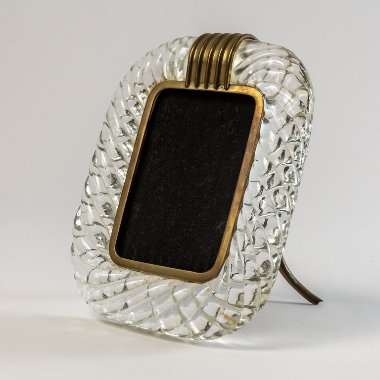 Un portaritratti in cristallo ritorto e ottone.