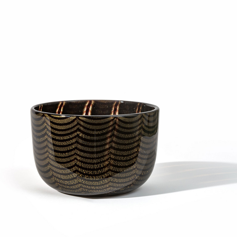 A 'graffito amaranto' bowl with wavy amethyst and gold leaf spirals .