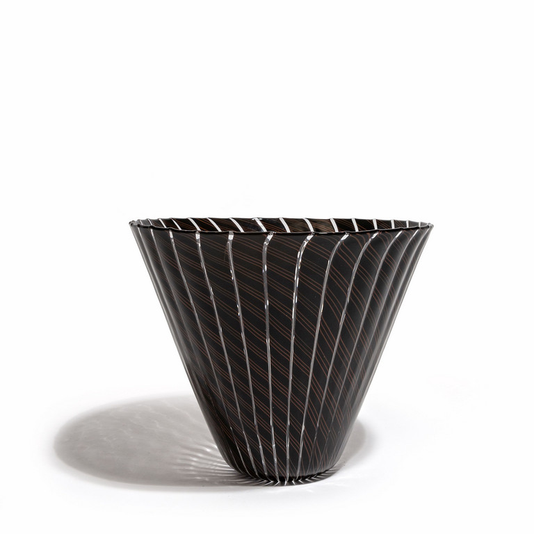 A vase from the 'zanfirici' series with black glass canes and orange filigrana.