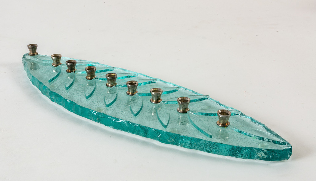 UN CANDELIERE, anni '70<br>Cristallo, ottone