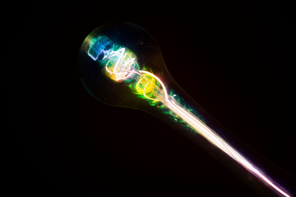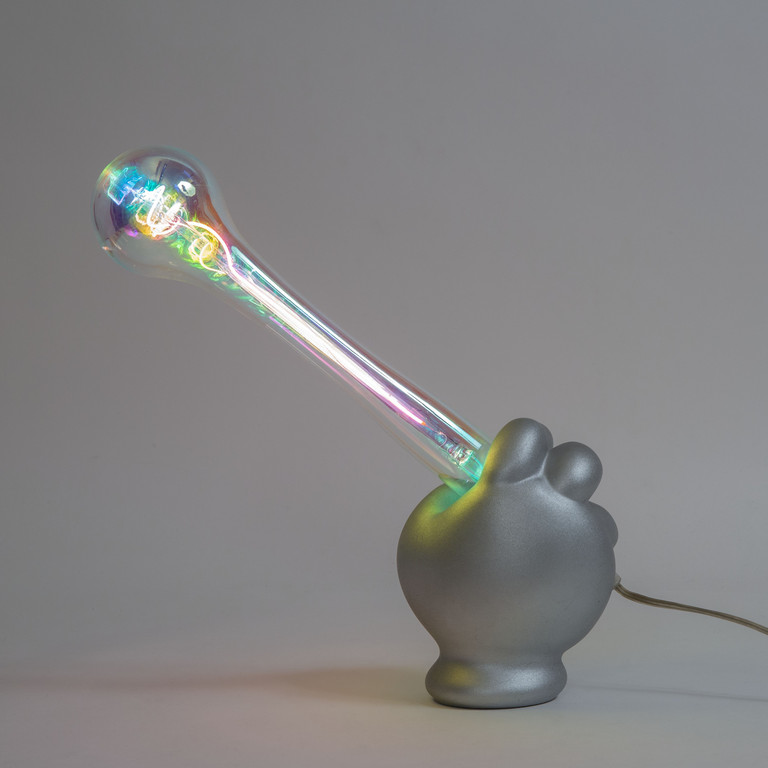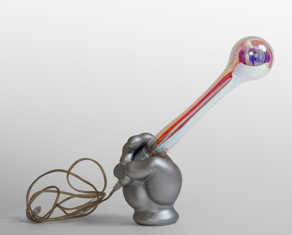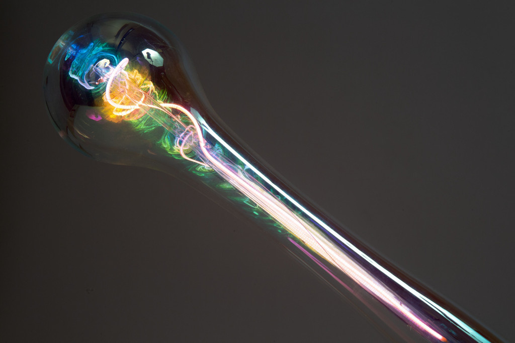 Resina. Lampadina con filamenti policromi e calotta
