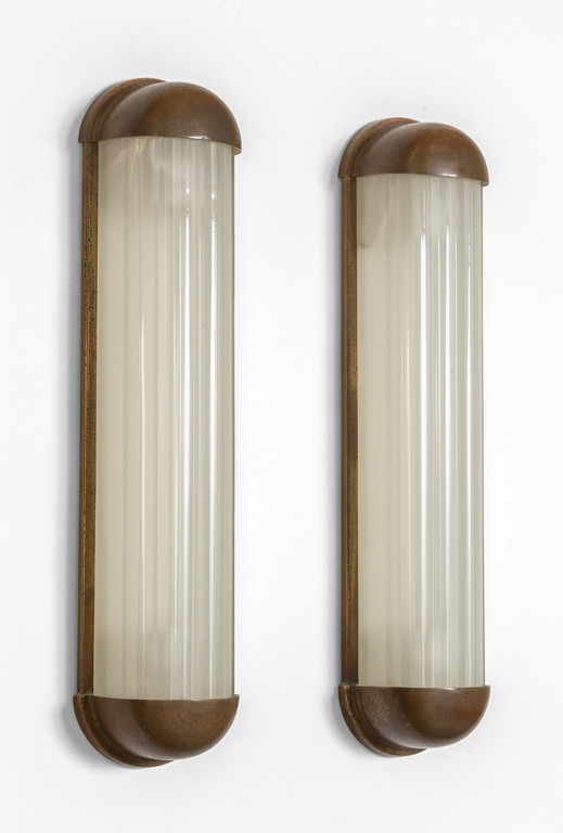 DUE LAMPADE DA PARETE, anni '50. <br>Ottone,