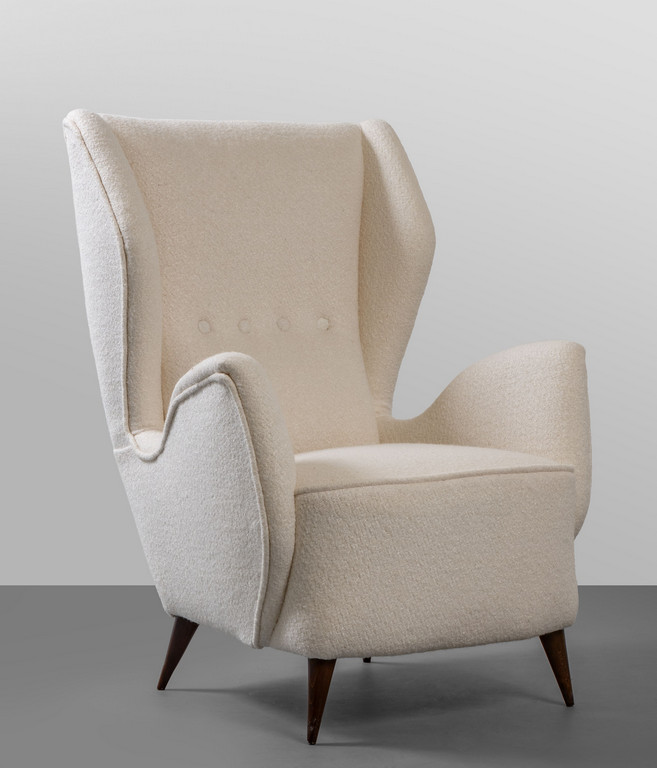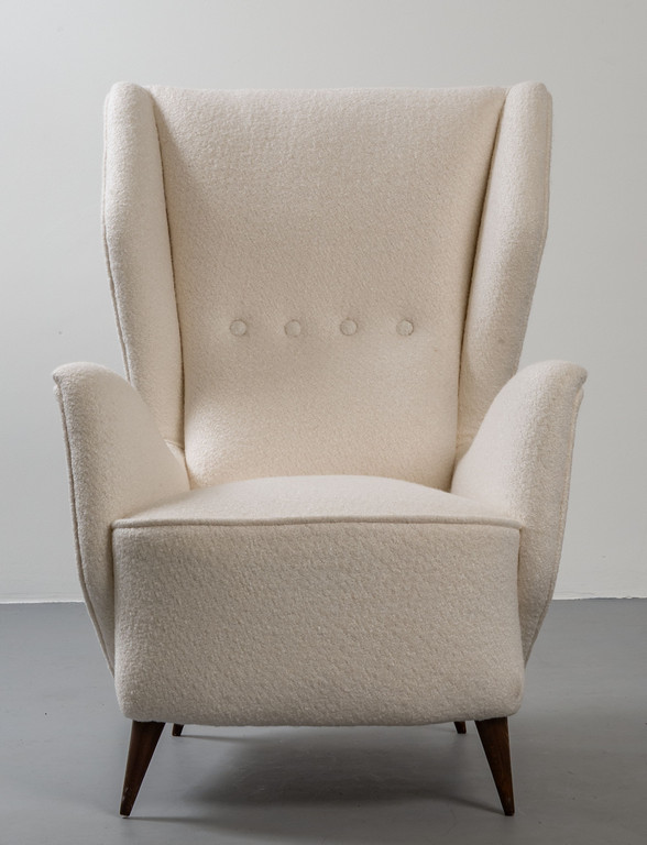 UNA POLTRONA, anni '50. <br>Struttura e gambe in