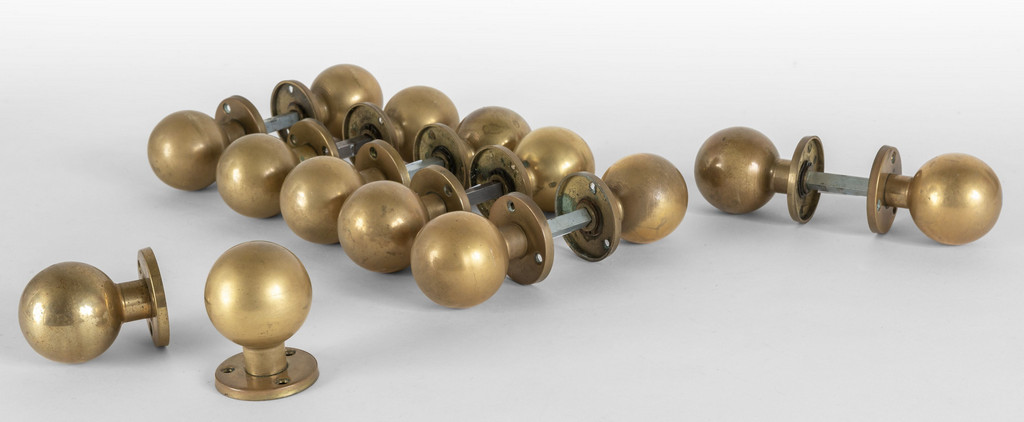 SETTE COPPIE DI MANIGLIE, anni '60. <br>Ottone.