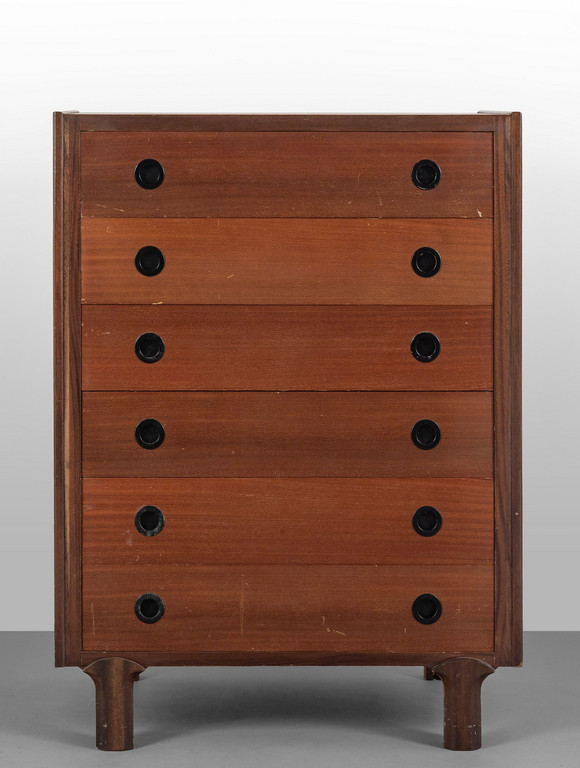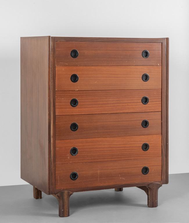 UNA CASSETTIERA, anni '60. <br>Legno di mogano,