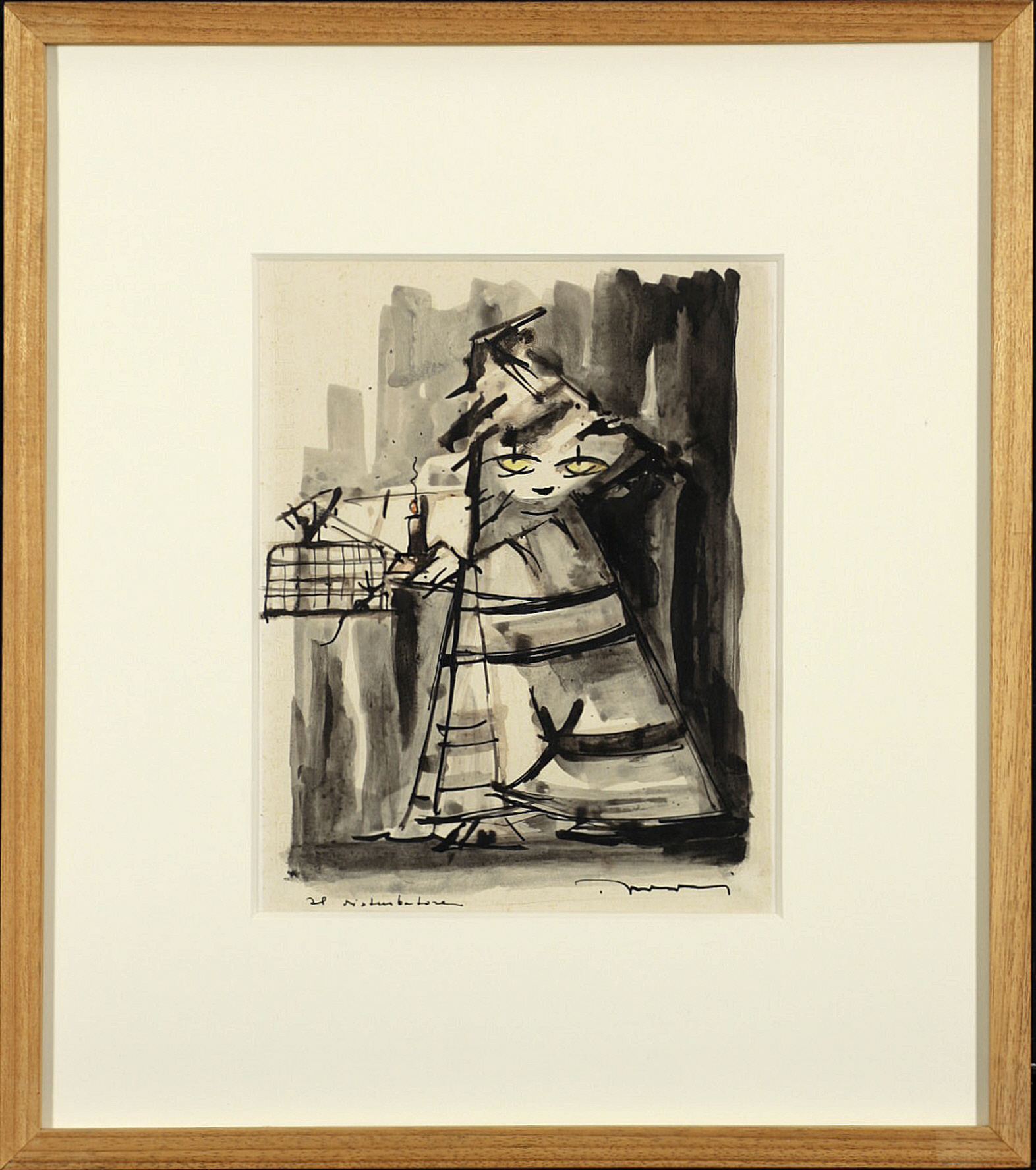 Mino Maccari (1898-1989) Il disturbatore China acquerellata su carta cm 32x23...