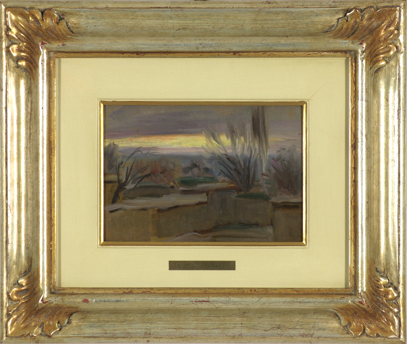 Nikolaj Karahan (1900-1970) Tramonto in città, 1940 olio su cartone rigido cm...