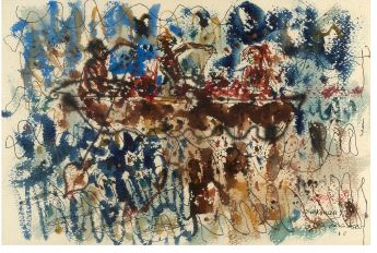 LAXMAN PAI (1926 - 2021) Composition à la barque, Paris 1956 Aquarelle sur...