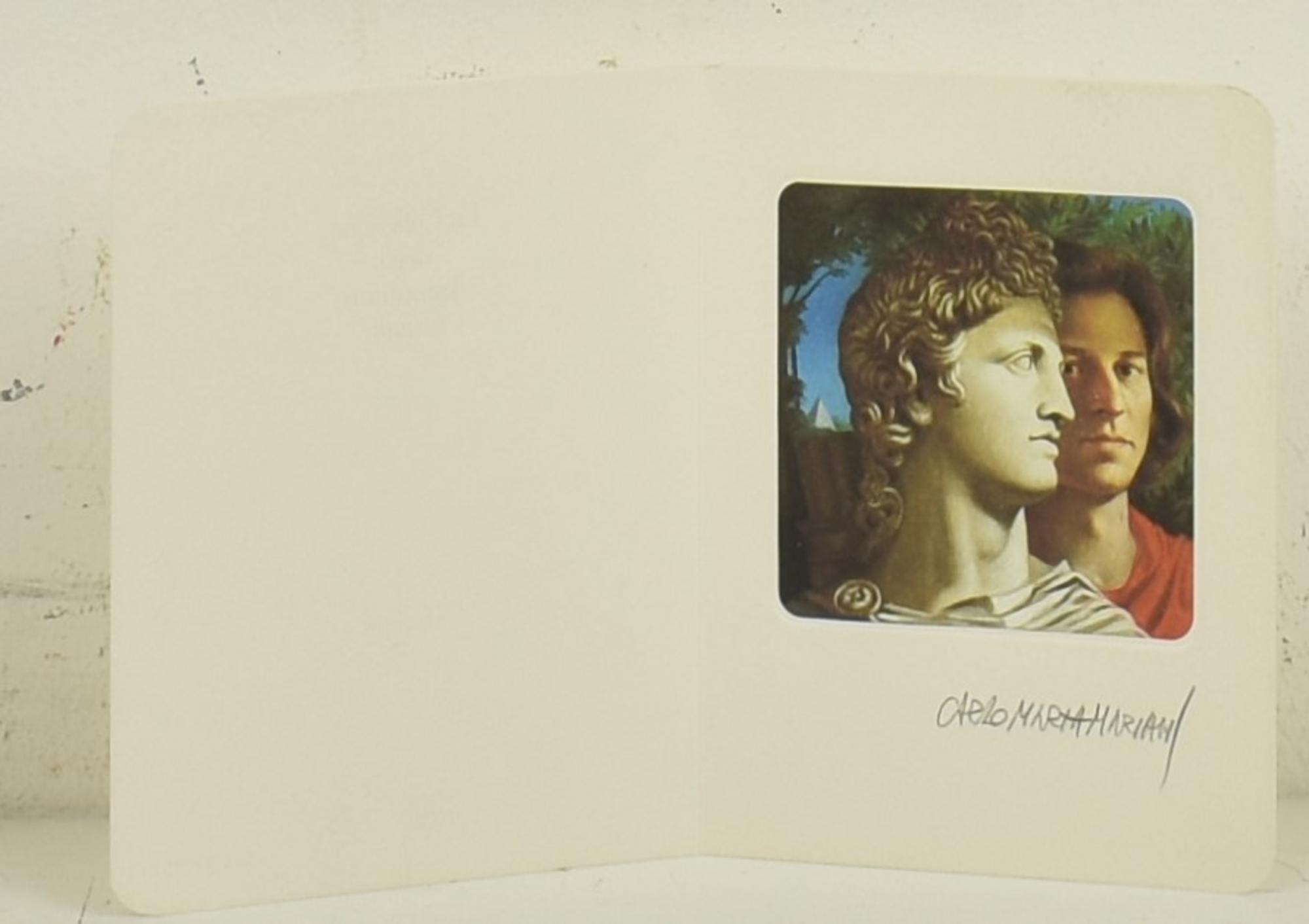 riproduzione fotolitografica a 4 colori dell'autoritratto di Carlo Maria Mariani, cm 8x8, su foglio cm 14x10,5; es. 1784/5000