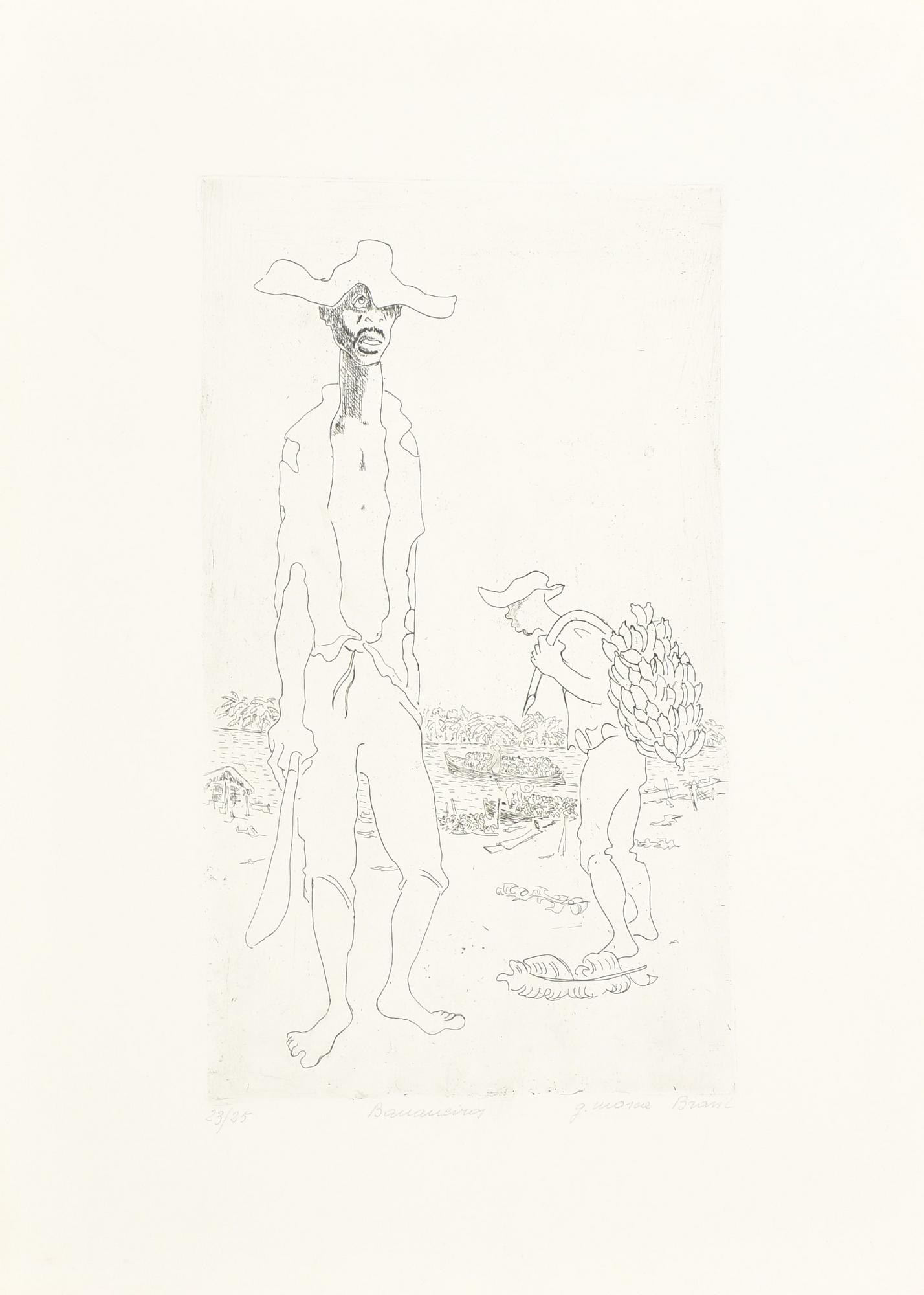 Guido Mosca BANANEIROS incisione su carta, battuta cm 35,4x21, su foglio cm...