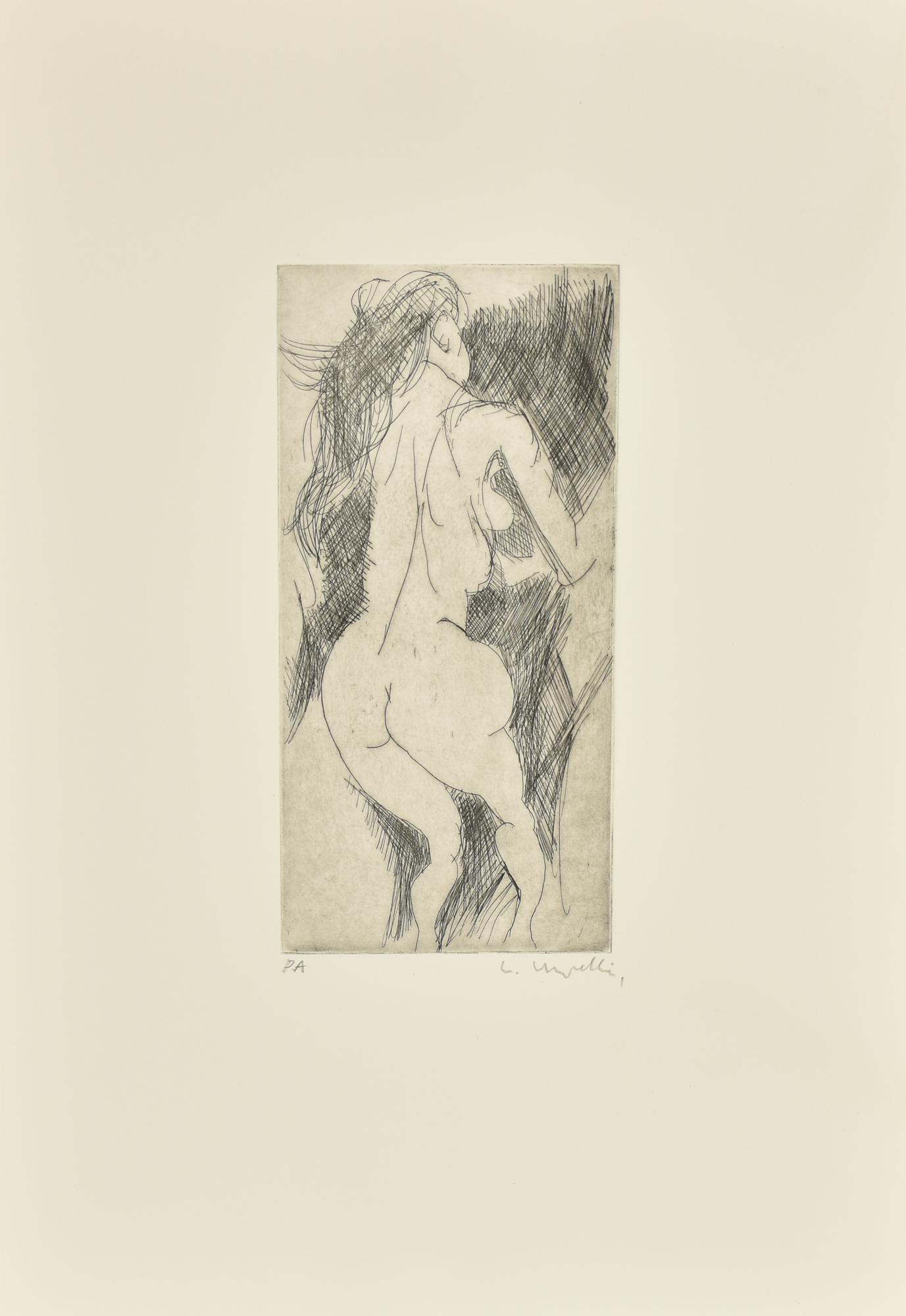 Carlo Morelli STUDIO DI NUDO acquaforte su carta, battuta cm 25x12, su foglio...