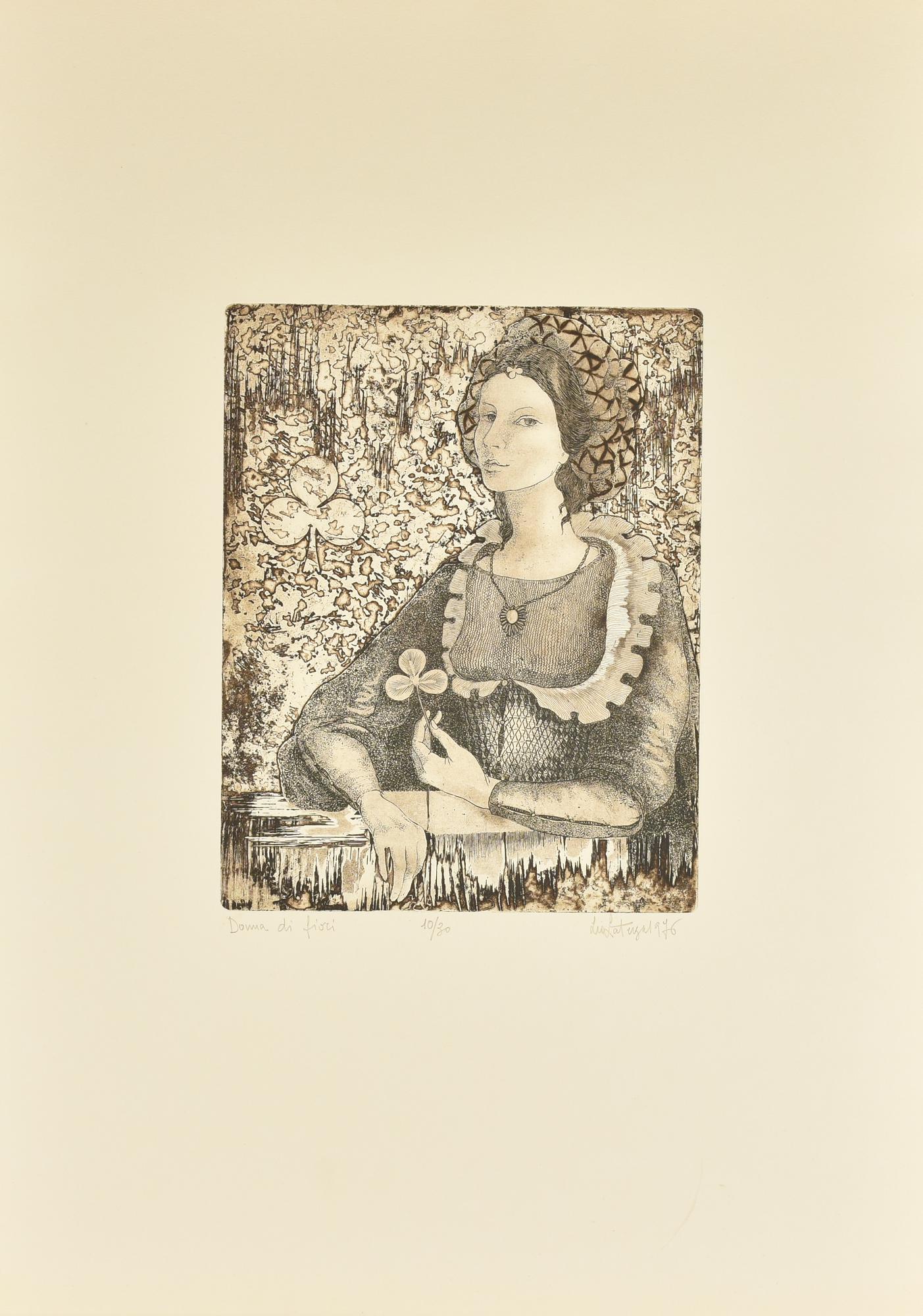 Lia Laterza DONNA DI FIORI incisione su carta, battuta cm 32x25, su foglio cm...