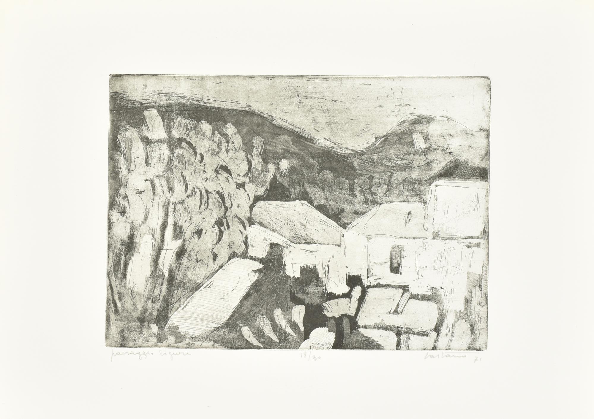 Aldo Castano PAESAGGIO LIGURE incisione su carta, battuta cm 22,5x31, su...