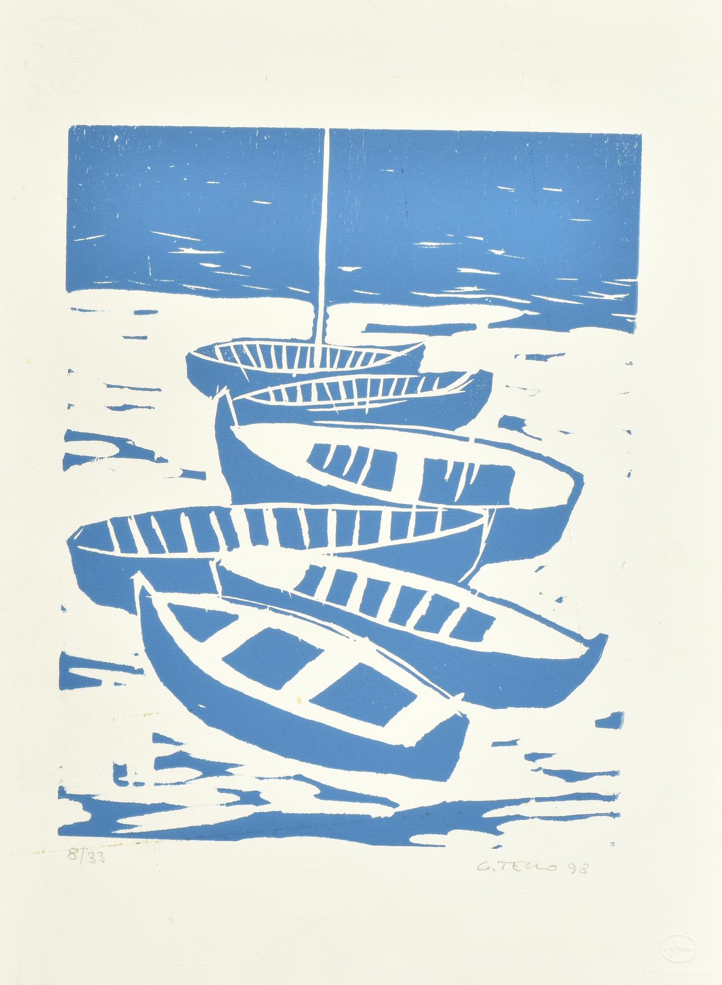 G. Tello BARCHE xilografia su carta, cm 39x29; es 8/33 firma e data eseguita...