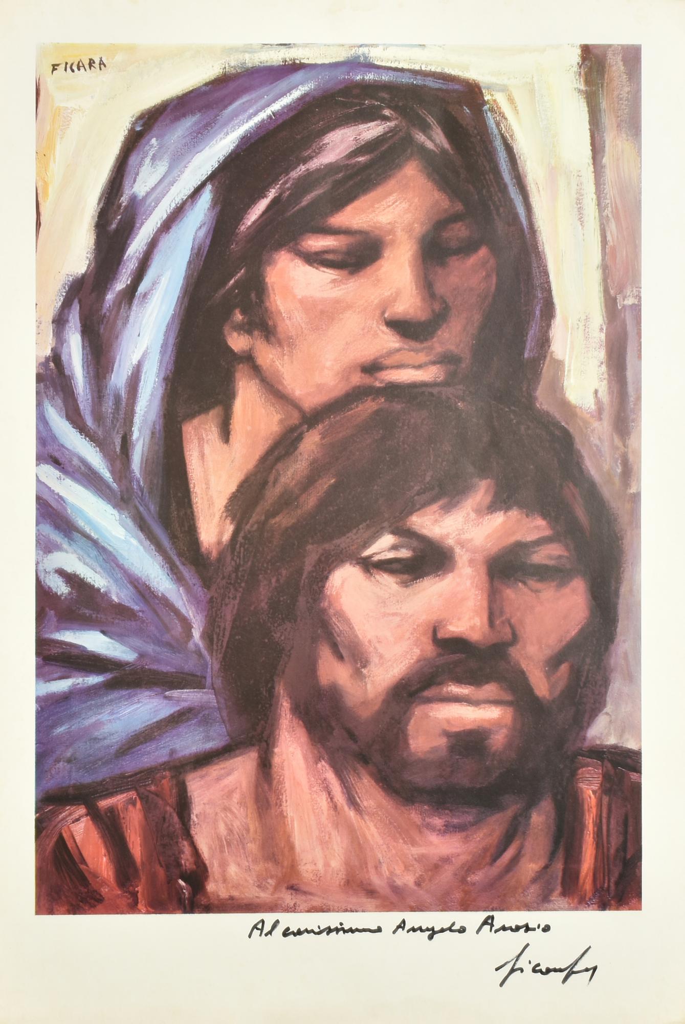Franz Ficara COPPIA stampa su carta, cm 72x47 firma e dedica ad personam