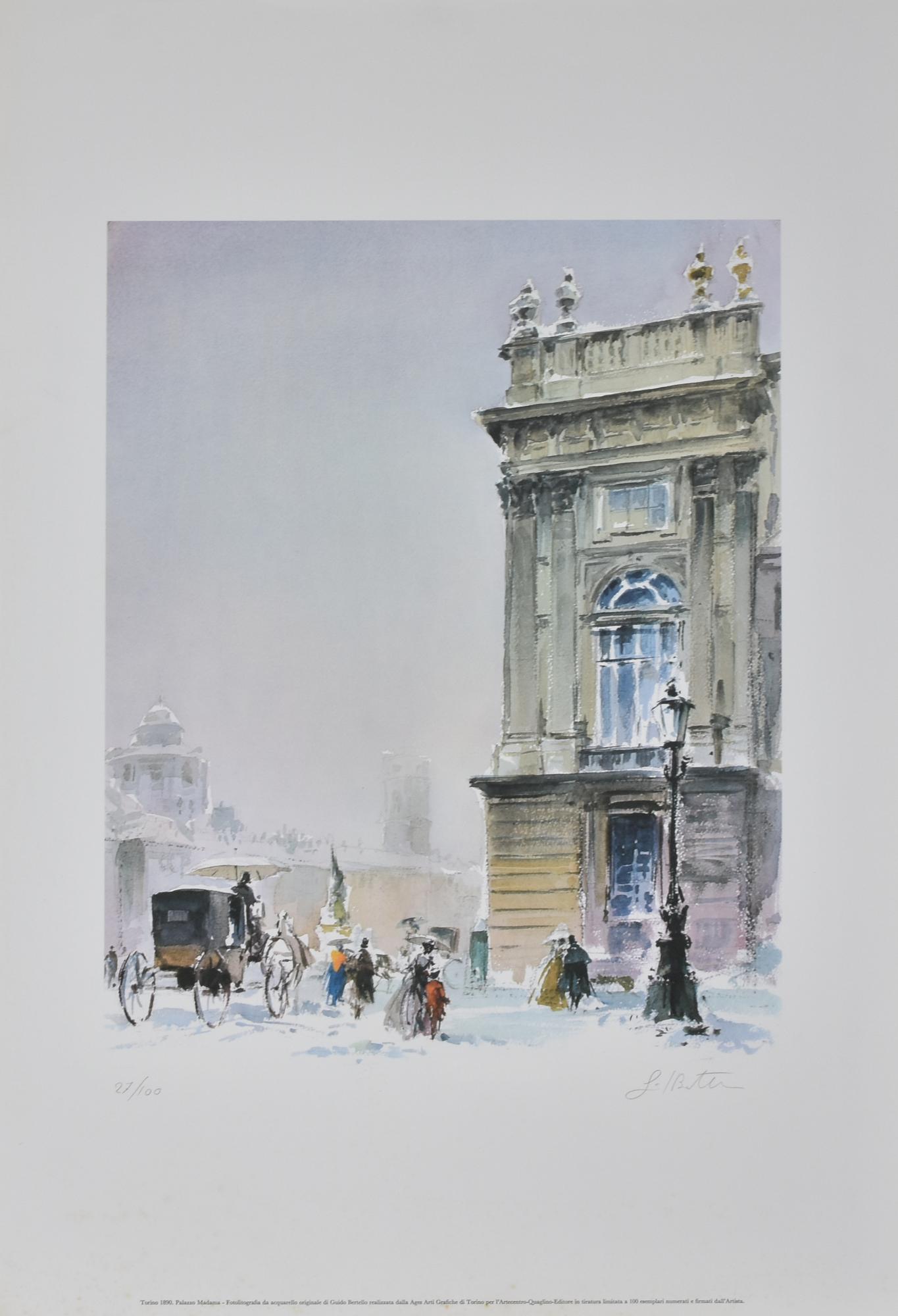 Guido Bertello NEVICATA IN PIAZZA CASTELLO fotolitografia su carta, cm 70x50...
